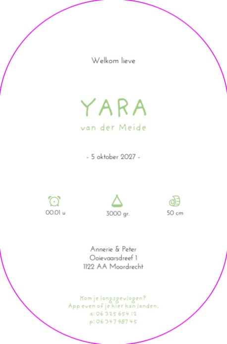 Is deze kaart wat voor jou? Ga zelf aan de slag in de editor! Bewerk de naam, datum, lettertypes, kleuren en illustraties.